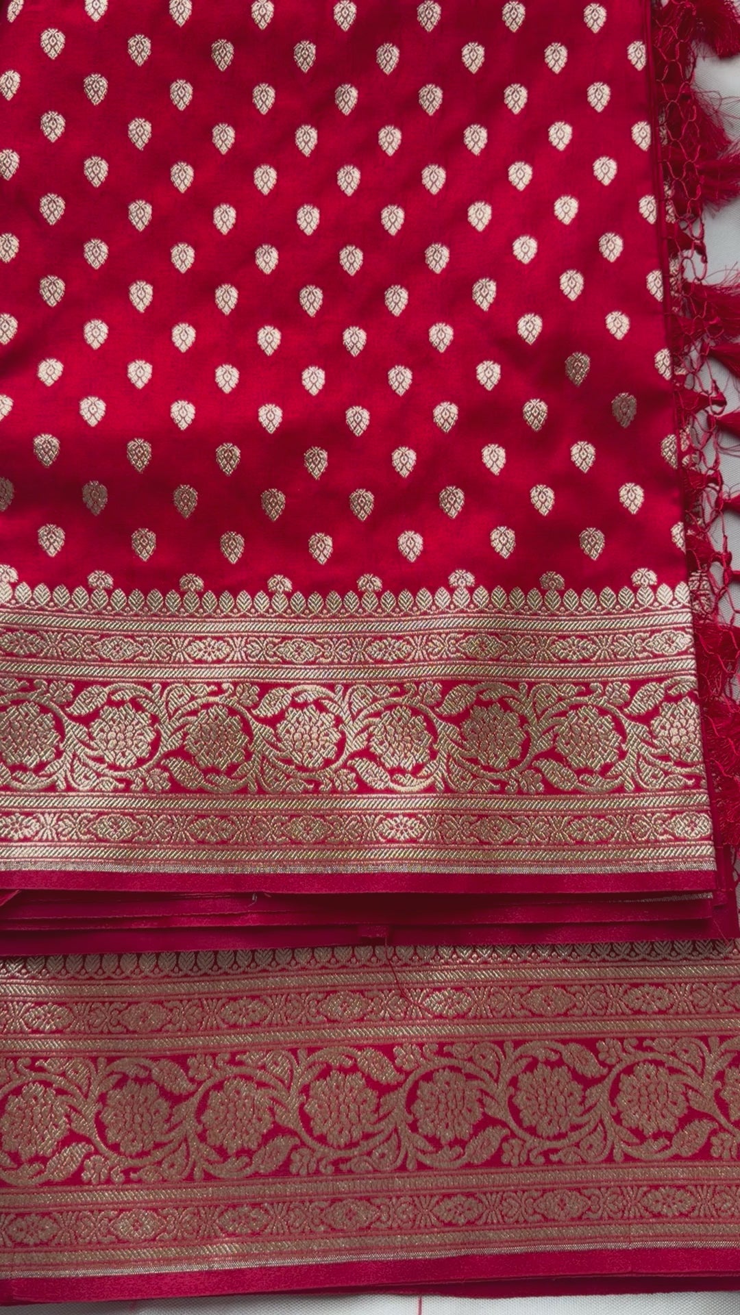 Red Banarasi satin Saree with Gold Zari work- (Samantha Inspired Wedding Saree
